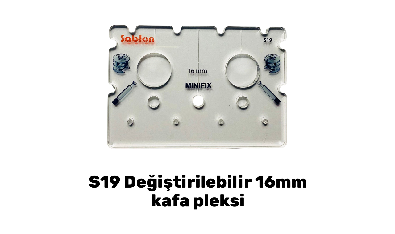 - 3 adet şablon, minifix kavela ve raf delikleri için