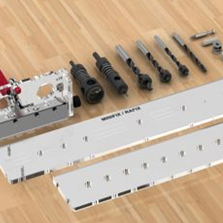 Sökülebilir, takılabilir mobilya imalatında minifix son derece önemli bir bağlantı elemanıdır. Bu şablon seti ile minifix montajı için gerekli olan birleştirilecek olan her iki levhadaki toplam 3 adet delik kusursuz,hızlı ve çok pratik bir şekilde açılabilmektedir. Minifix delik yerleri yanı sıra aynı şablon seti ile aynı ayarlar kullanılmak suretiyle kavela delik yerleri açılabilmekte ve yine ayarlı raflar için 32 mm aralıkla raf delik yerleri delinmektedir.